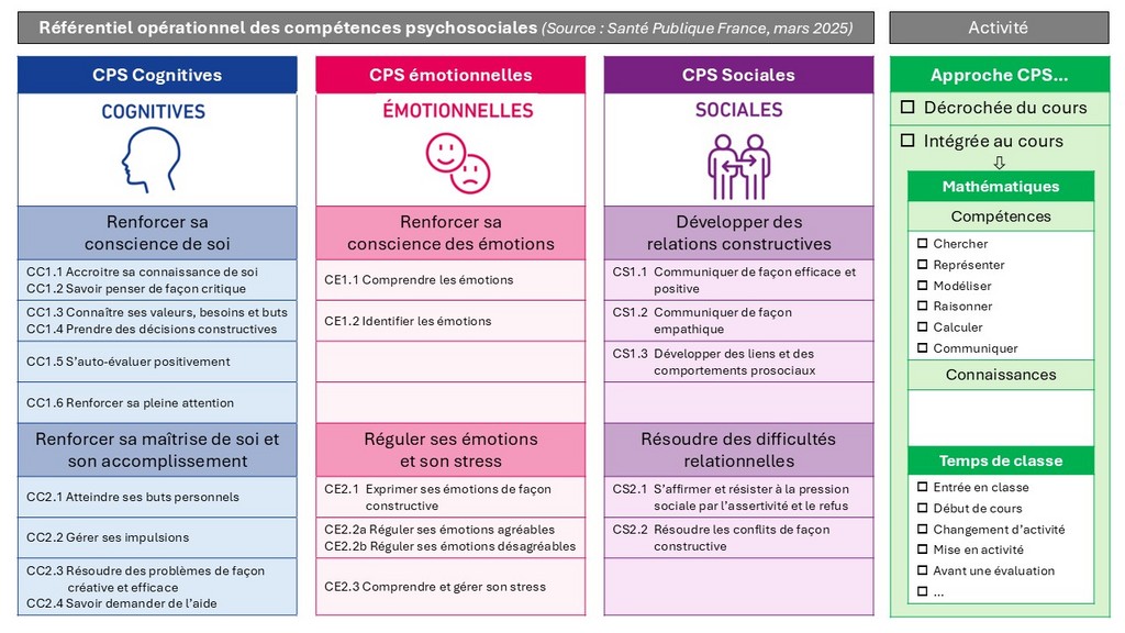 Cette année (2025), Santé Publique France a mis à jour le référentiel des CPS qui organise et donne une direction pour les déployer avec les en enfants et les jeunes.